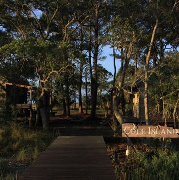 Cole Island is located on Cole Creek off the Folly River in South Carolina. The island's footprint covers approximately 300 acres of highlands and wetlands. The island itself is shielded by a canopy of old live oaks and secured by pluff mud and marshland. All land on the island is given and taken with the changing tide, and always at the mercy of Mother Nature.